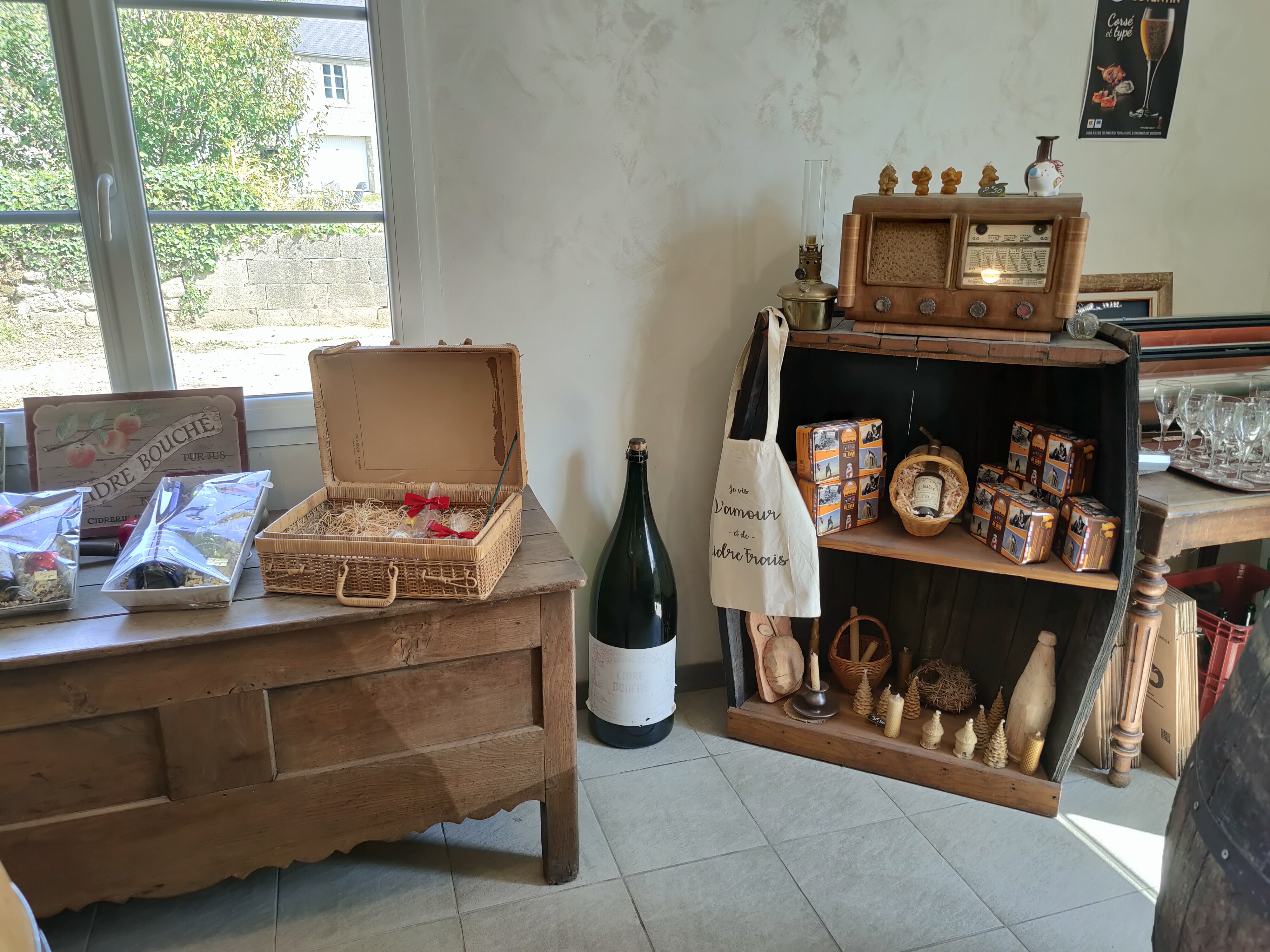 Nous avons gouté quelques cidres et la vous ne serez pas deçut. La boutique n est pas grande mais la dame qui vous sert est très très gentille et vous fait gouter sans problème si vous le désirez. Quelques produits de trés bonne qualité et le pommeau est extraordinaire🙂🙂.